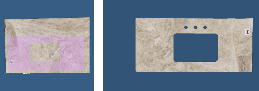 Using advanced CAD software, our team digitally places your countertop template onto your chosen slab. This step allows us to: